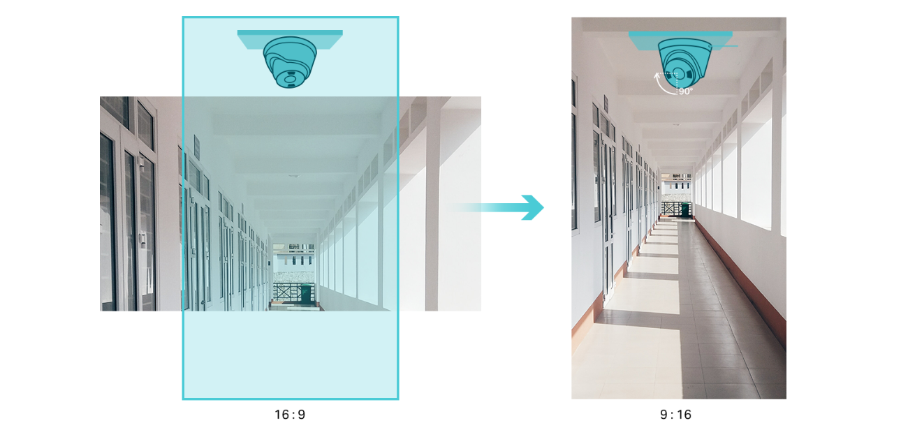 - Corridor Mode: Allows you to change the image aspect ratio from 16:9 to 9:16, and helps to monitor long and narrow areas.