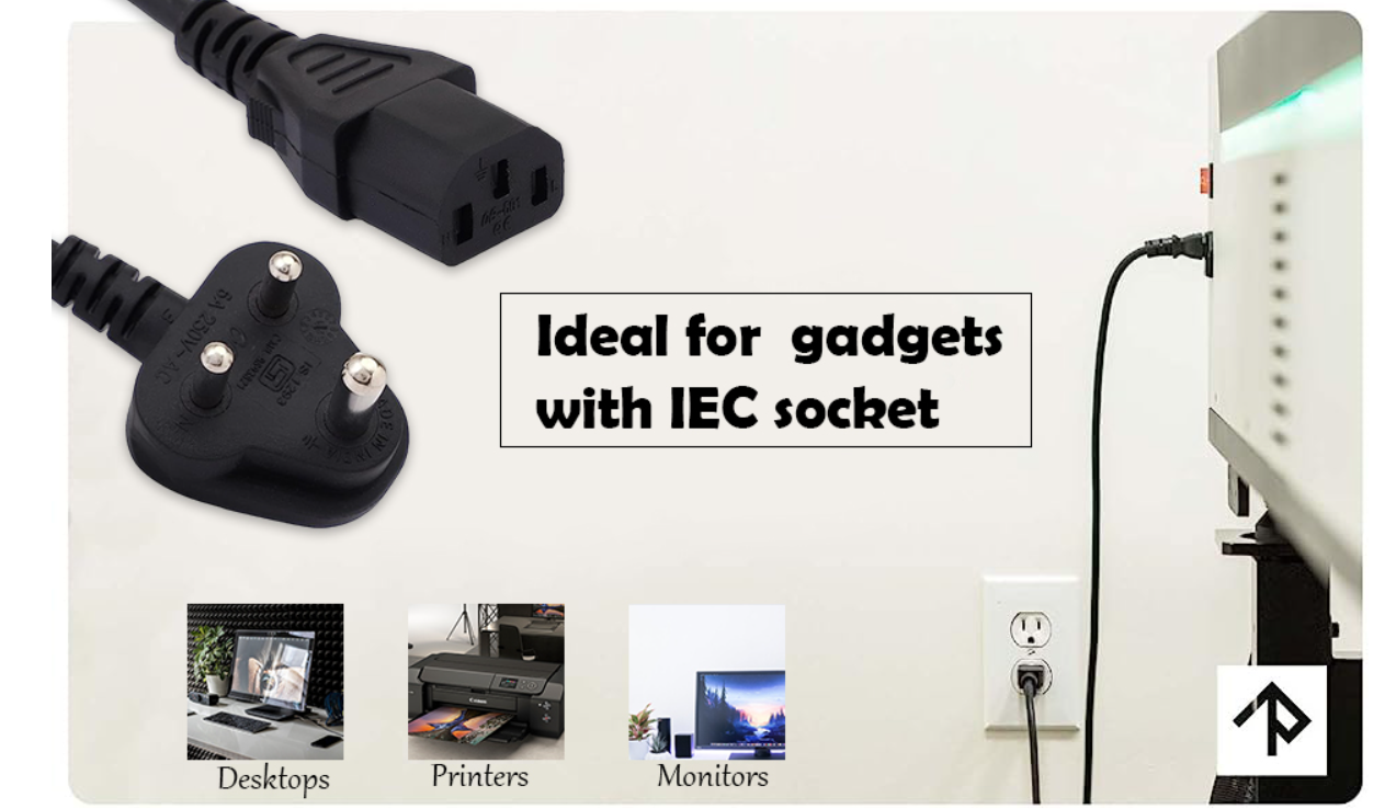 - Ideal for Desktops, Printers, Monitors, other gadgets with IEC socket