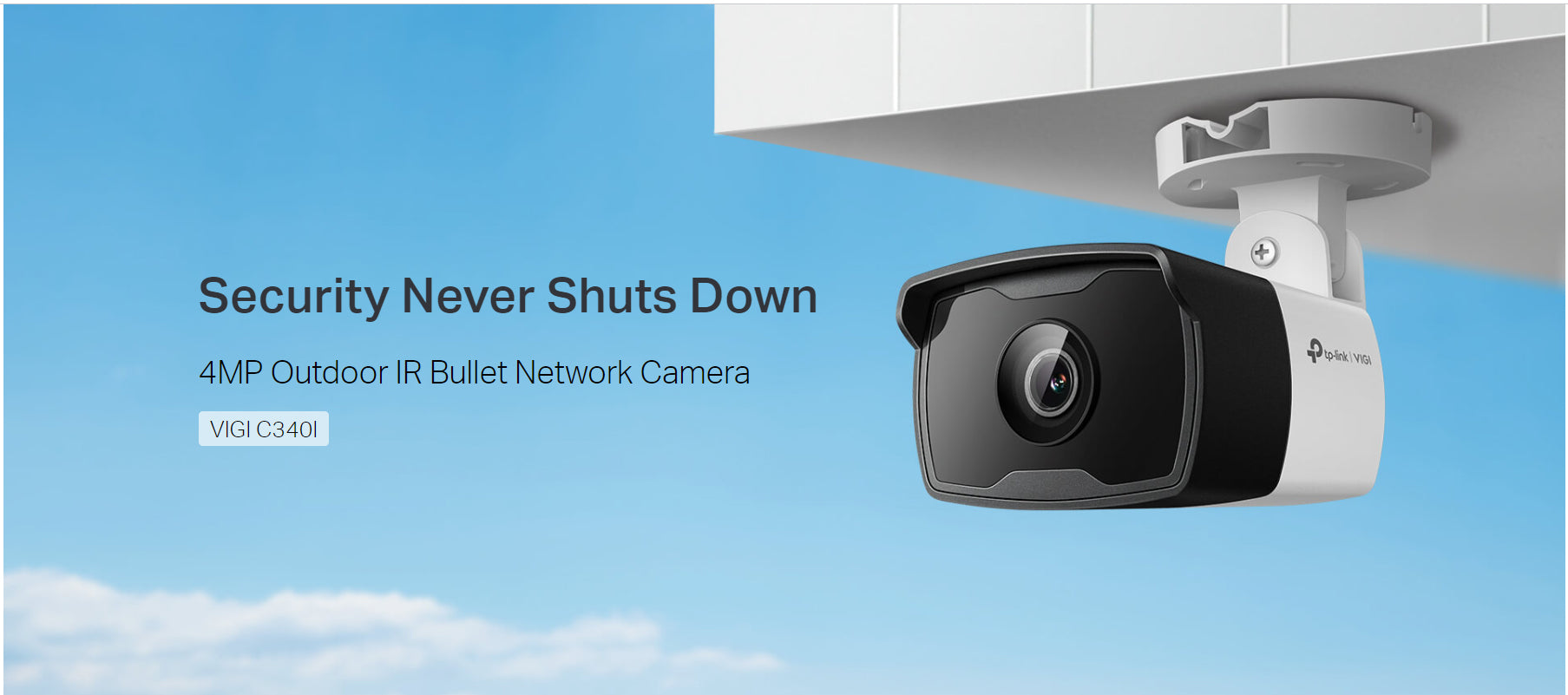 - TP-Link VIGI C340i VIGI 4MP HD Outdoor Bullet Network Wired CCTV Camera | Smart IR | Waterproof IP66 | H.265+ | Smart Detection TP-Link VIGI C340i VIGI 4MP HD Outdoor Bullet Network Wired CCTV Camera | Smart IR | Waterproof IP66 | H.265+ | Smart Detection