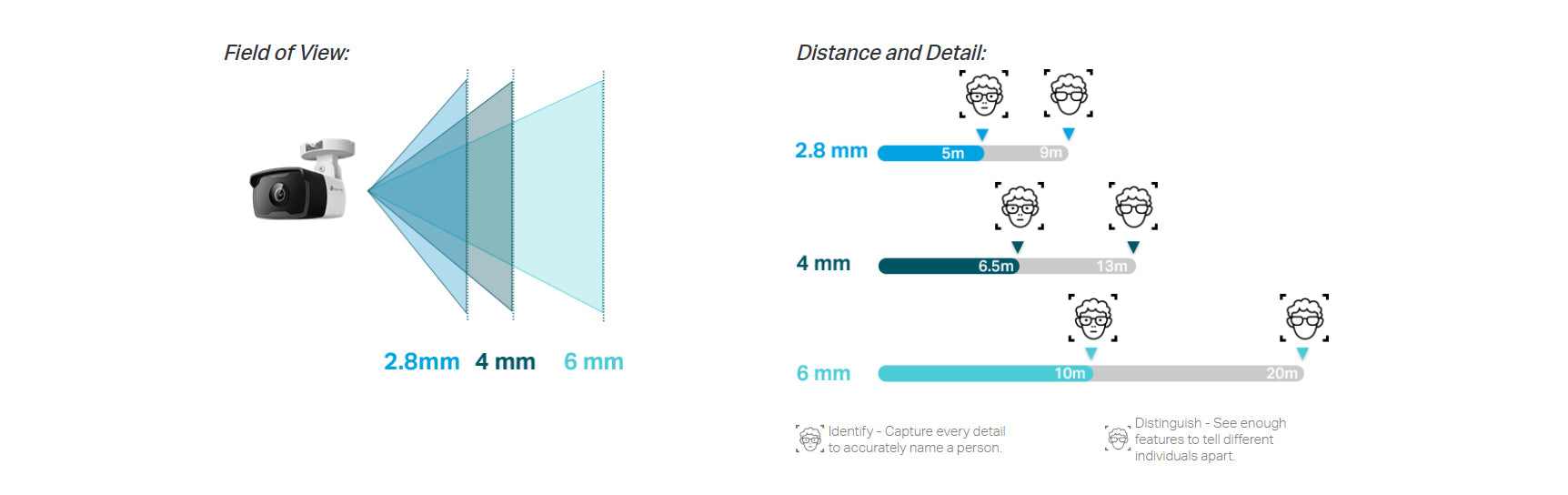 - 2.8/4/6 mm Lens: Whether you need a wide-angle lens to cover enclosed spaces or a higher millimeter lens for longer distances in open spaces, C340I comes with three different lens types to better suit your security needs.