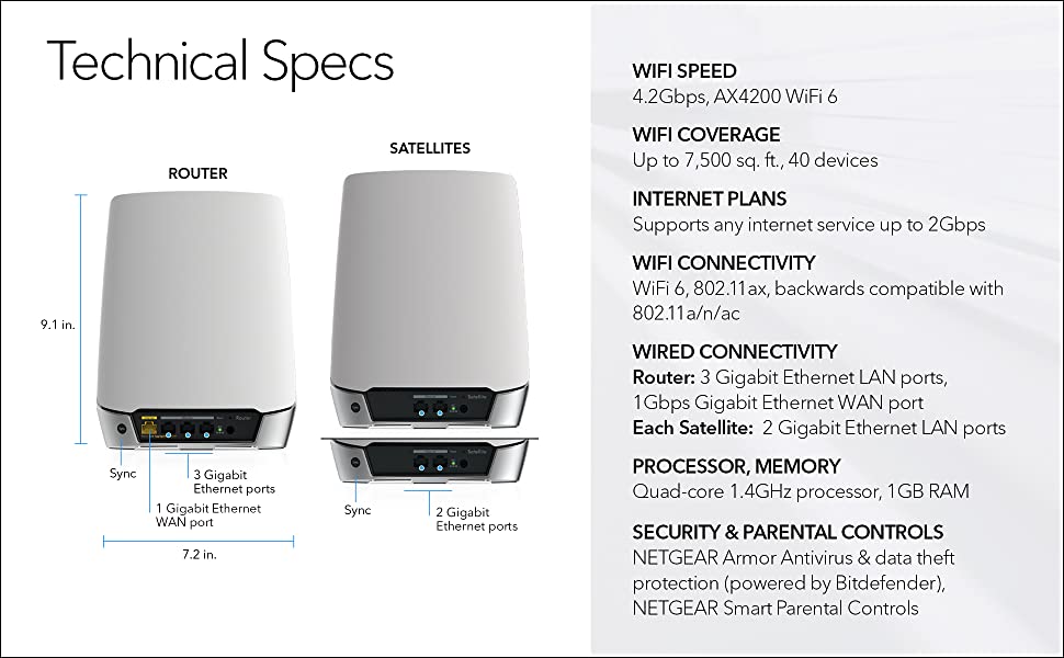 - The complete WiFi solution for your smart home. Cover up to 7,500 sq. ft. with blazing-fast, reliable WiFi with speeds of up to 4.2Gbps for over 40 devices. Stream, browse, and work uninterrupted in every room of your home.