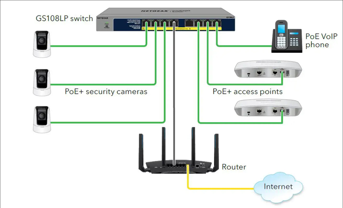 - Netgear GS108LP 8-Port Gigabit Ethernet PoE+ Unmanaged Switch with FlexPoE | 60W PoE Budget | Desktop / Rackmount Netgear GS108LP 8-Port Gigabit Ethernet PoE+ Unmanaged Switch with FlexPoE | 60W PoE Budget | Desktop / Rackmount