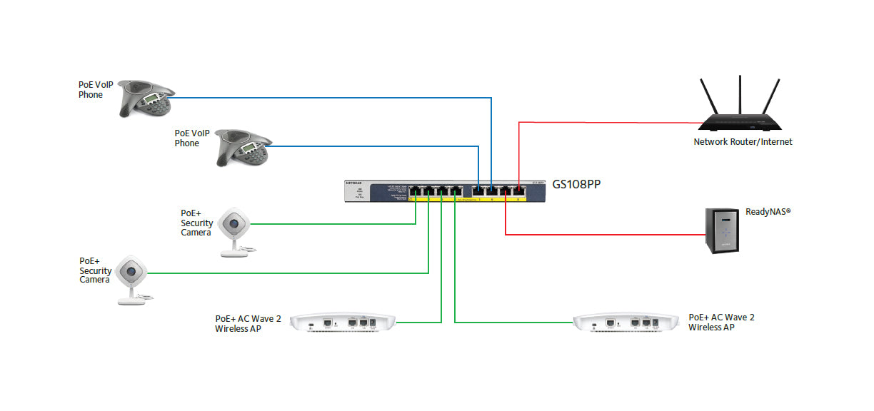 - Netgear GS108PP 8-Port Gigabit Ethernet High-power PoE+ Unmanaged Switch with FlexPoE | 123W PoE Budget | Desktop / Rackmount Netgear GS108PP 8-Port Gigabit Ethernet High-power PoE+ Unmanaged Switch with FlexPoE | 123W PoE Budget | Desktop / Rackmount