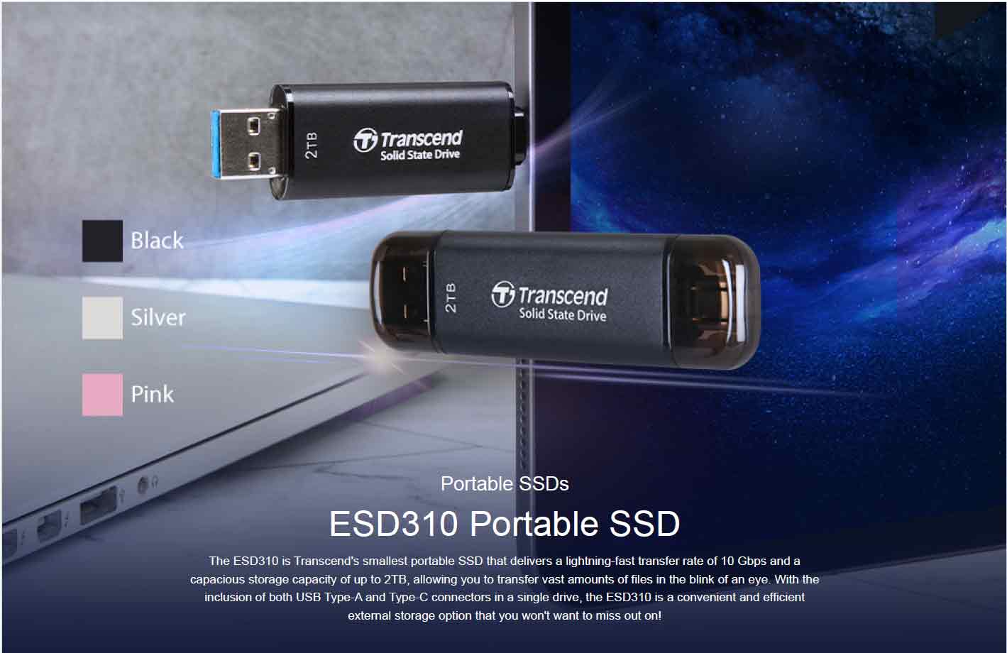 Transcend 310C 2-in-1 Portable External SSD with USB C & USB A Ports | – BOXNUBE