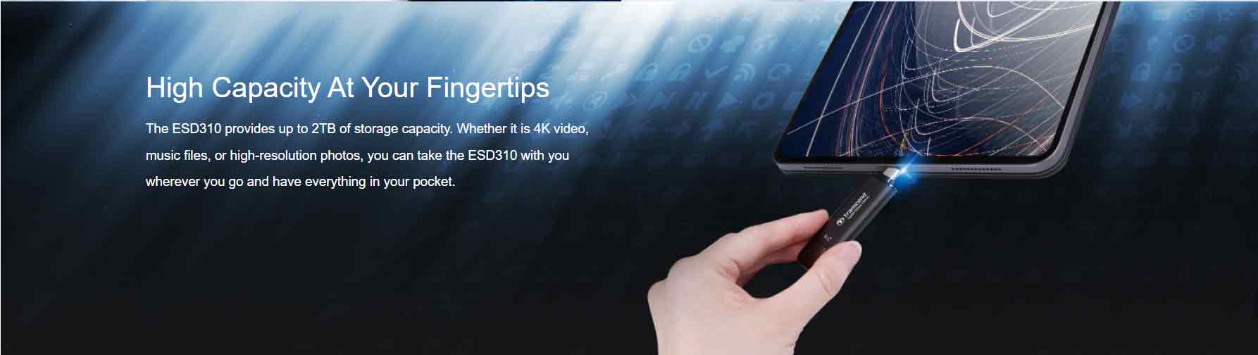 The ESD310 provides up to 2TB of storage capacity. Whether it is 4K video, music files, or high-resolution photos, you can take the ESD310 with you wherever you go and have everything in your pocket.