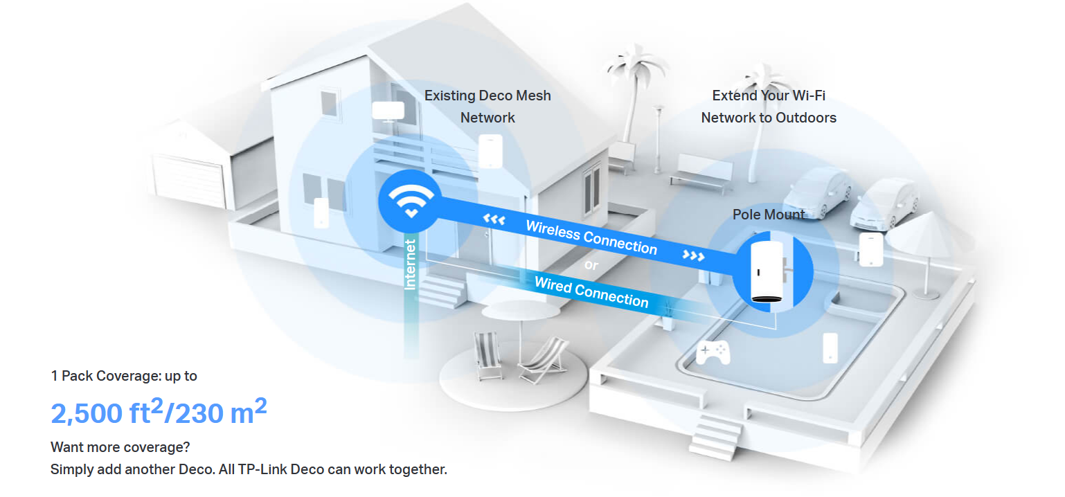 - TP-Link Deco X50-Outdoor AX3000 Outdoor / Indoor Whole Home Mesh WiFi 6 Unit | 2 × Gigabit WAN/LAN | PoE Enabled TP-Link Deco X50-Outdoor AX3000 Outdoor / Indoor Whole Home Mesh WiFi 6 Unit | 2 × Gigabit WAN/LAN | PoE Enabled