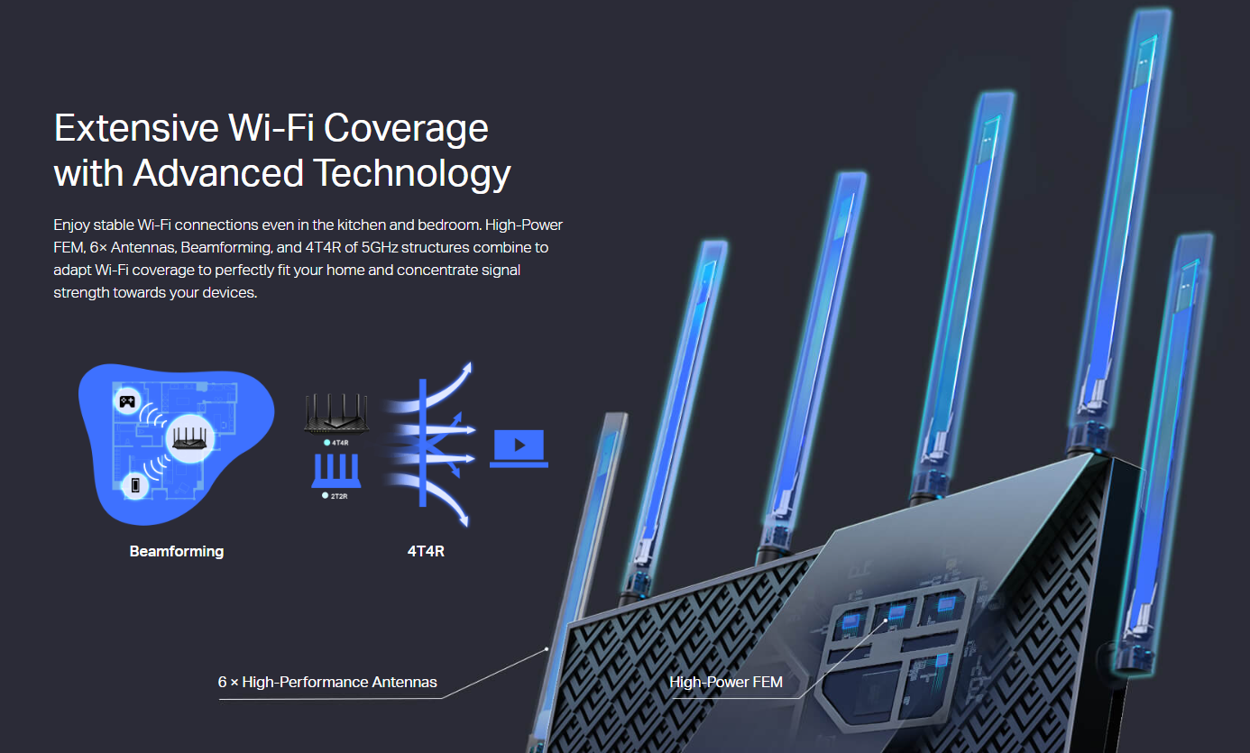 Extensive Coverage – 6× antennas and Beamforming ensure broad coverage.