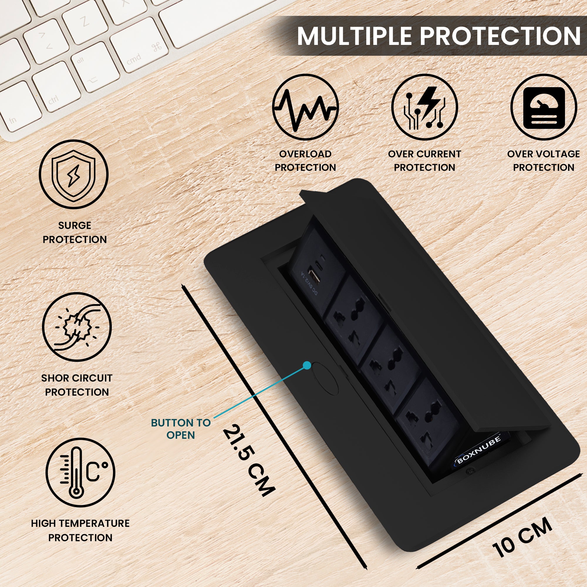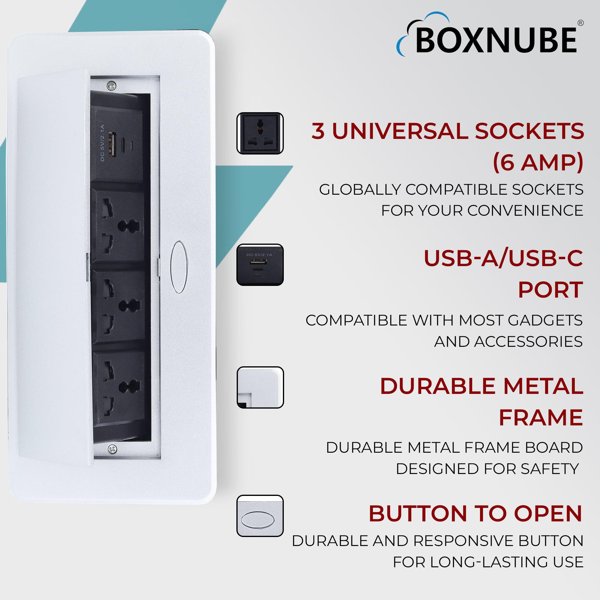 - BOXNUBE Hydraulic Pop UP Box Cable Cubby Extension Board with 3 x Universal Power Sockets & 1 x USB Type C & 1 x USB A Ports BOXNUBE Hydraulic Pop UP Box Cable Cubby Extension Board with 3 x Universal Power Sockets & 1 x USB Type C & 1 x USB A Ports