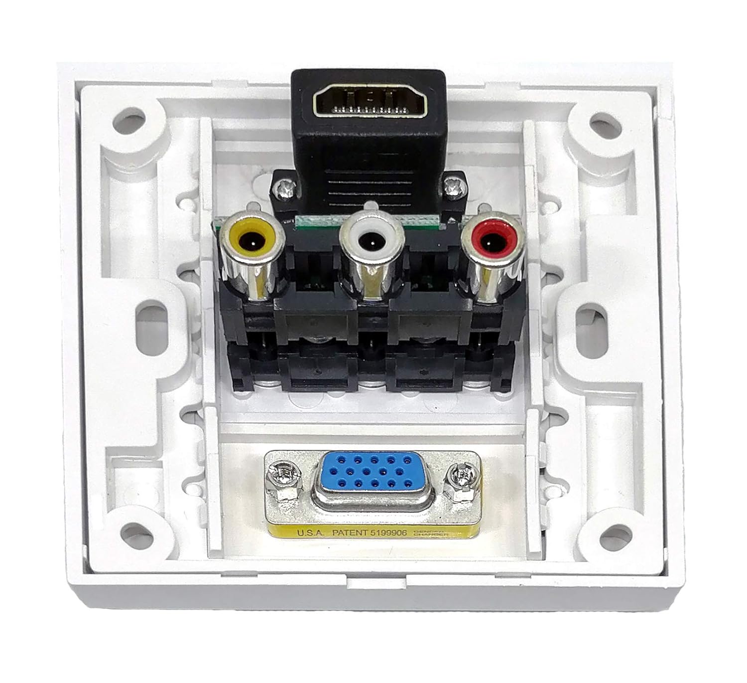 - HDMI, 3 RCA, VGA Audio Video Wall Face Plate Panel