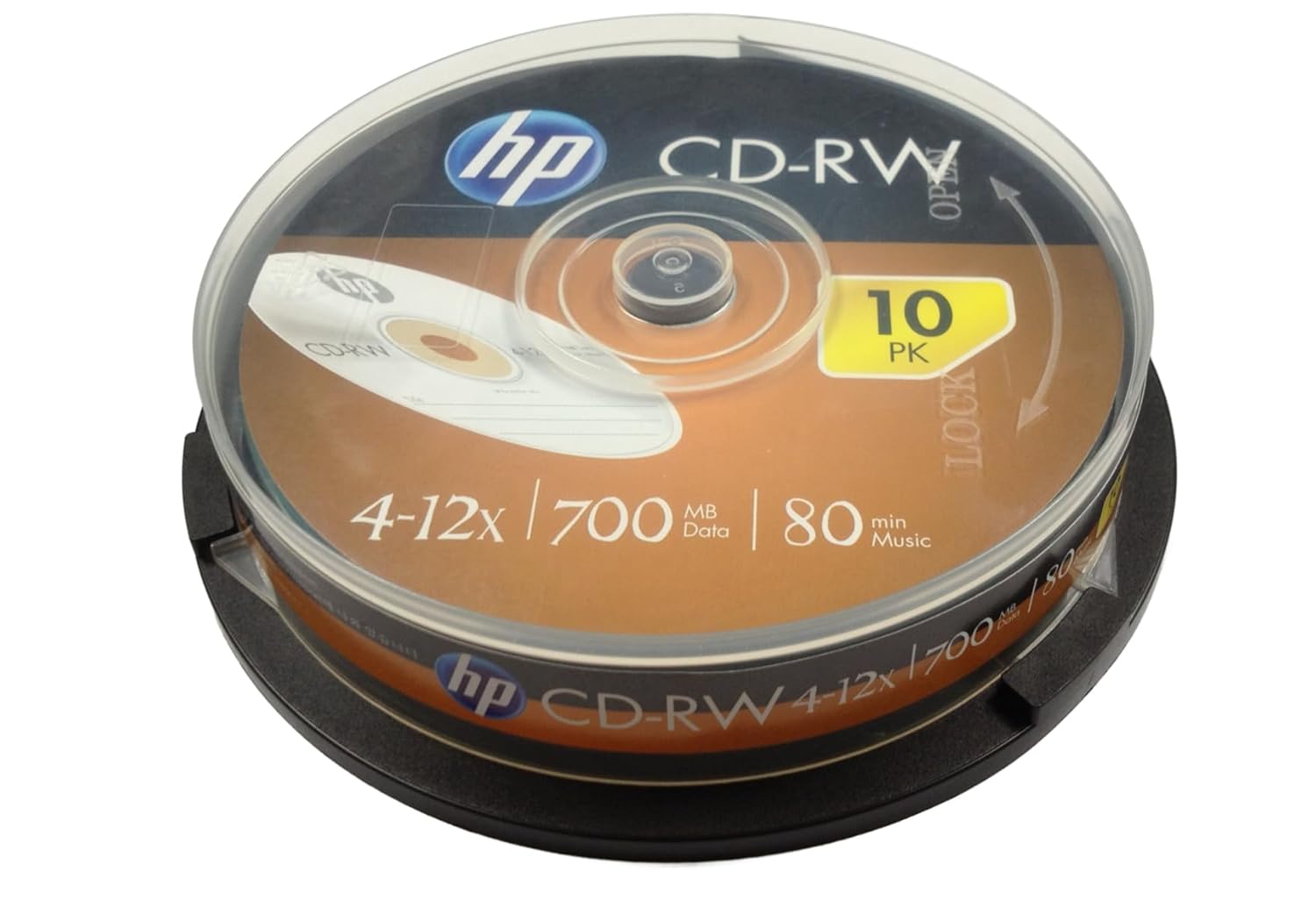 HP Blank CD-RW 700MB Rewritable CD Disc 4-12x Speed Spindle (Pack of 10) Part No. CWA00071