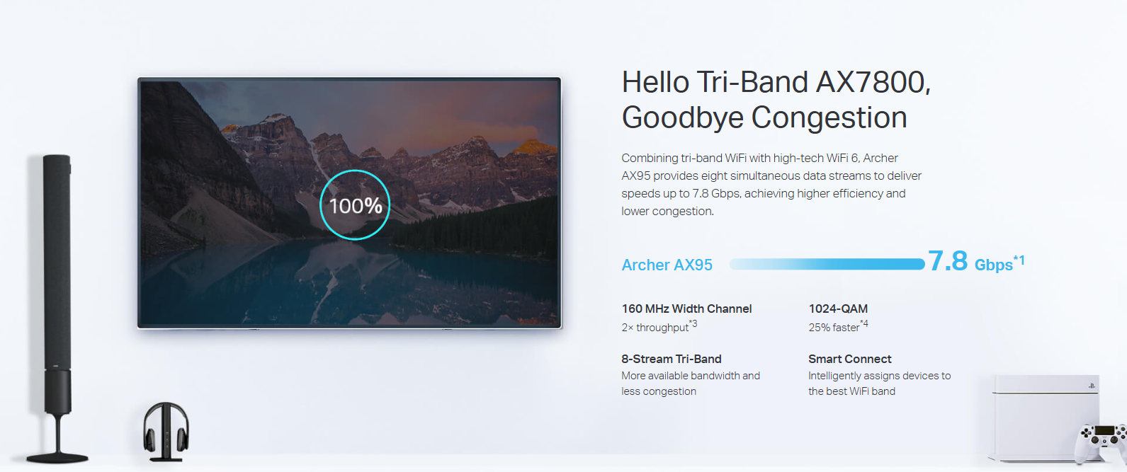 - TP-Link Archer AX95 AX7800 Tri-Band 8-Stream Wi-Fi 6 Router TP-Link Archer AX95 AX7800 Tri-Band 8-Stream Wi-Fi 6 Router