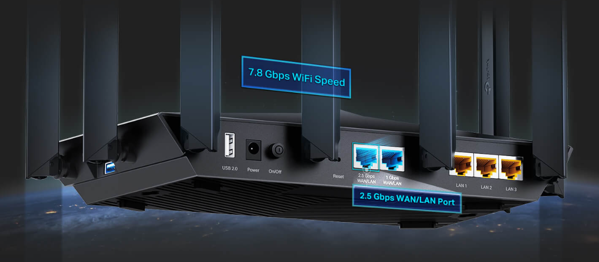 - Ultra Connectivity: 1× 2.5 Gbps WAN/LAN port + 1× 1 Gbps WAN/LAN port + 3× Gigabit LAN ports and two USB ports ensure max flexibility and boosted throughput.