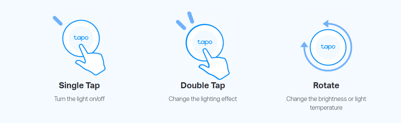 Program your smart button to trigger up to 4 different actions  with single tapping, double tapping, and rotating controls.